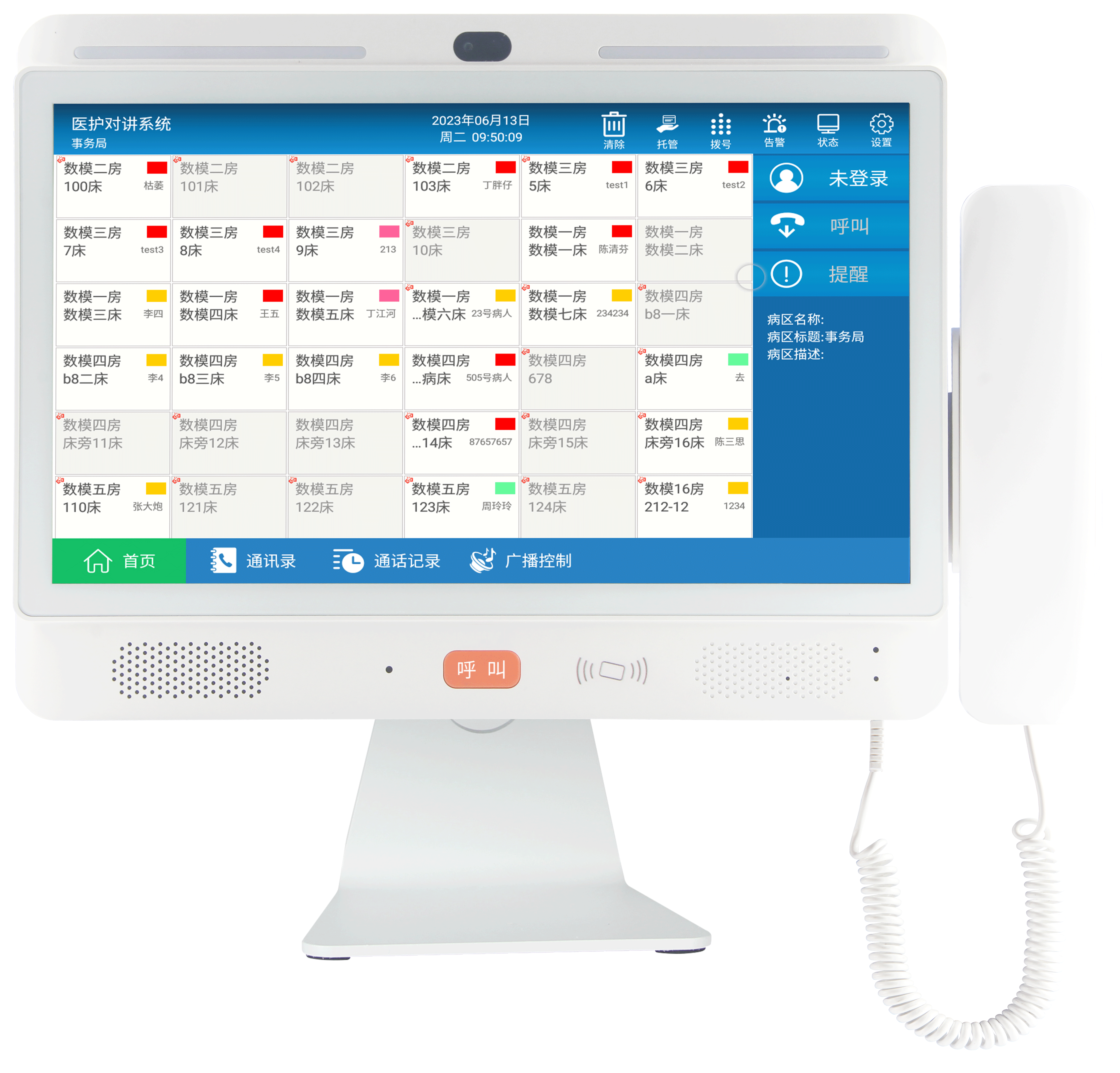 5. 一键式呼叫ICU管理主机并进行双向音频通话;